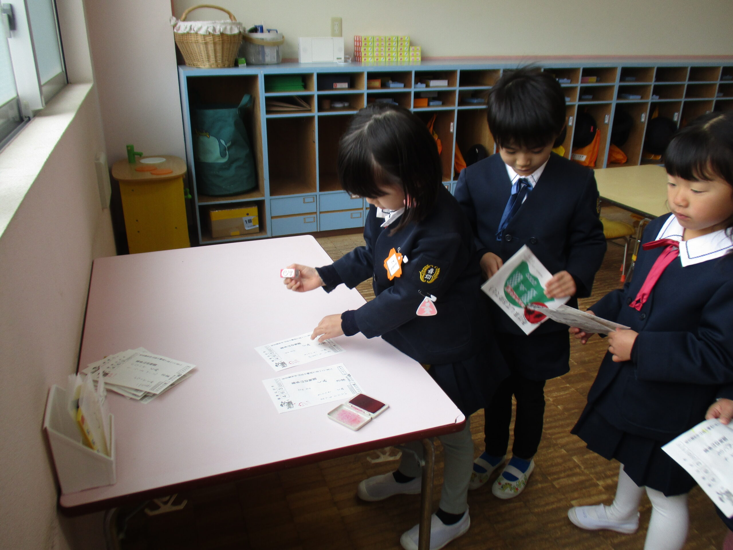 12月に作った年賀状を、郵便屋さんになって、クラスのポストにお届けしました。
