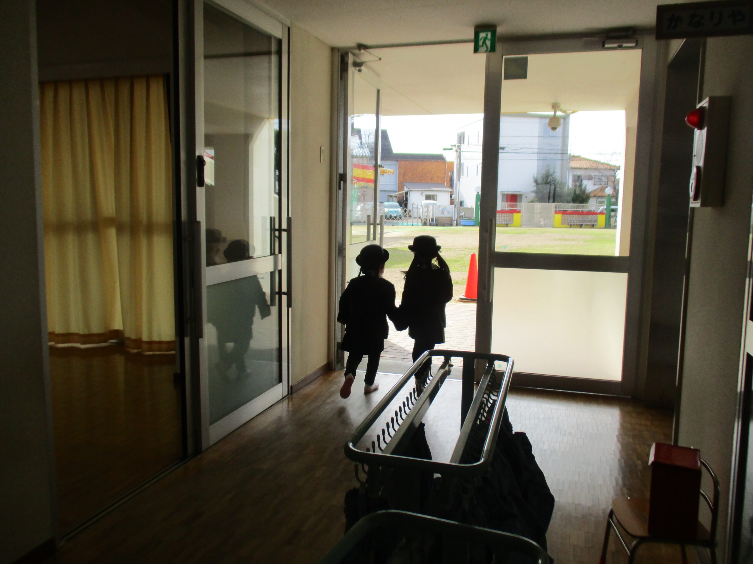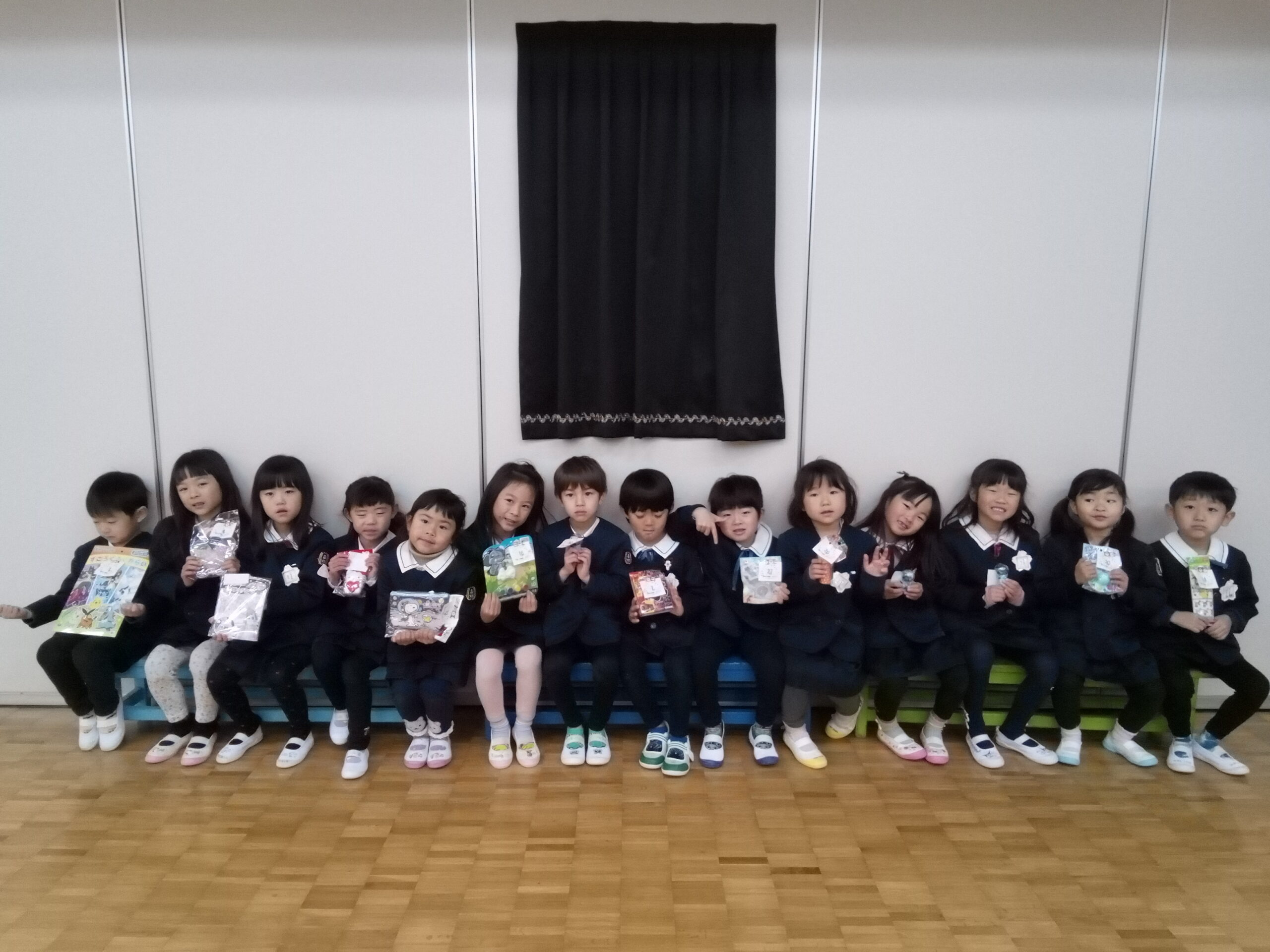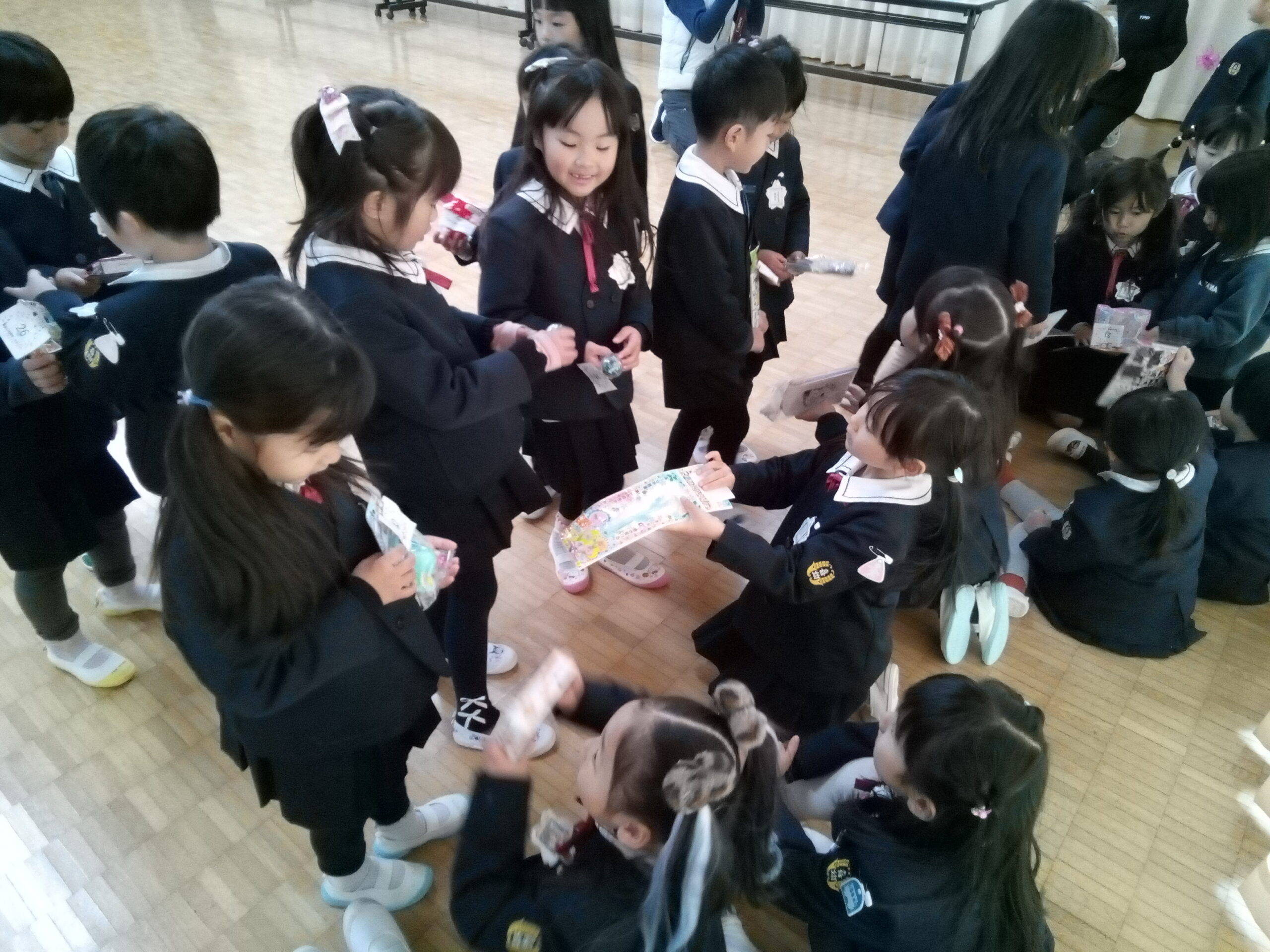 講堂に集まり、新年のあいさつをしてから、園長先生のお話を聞きました。
