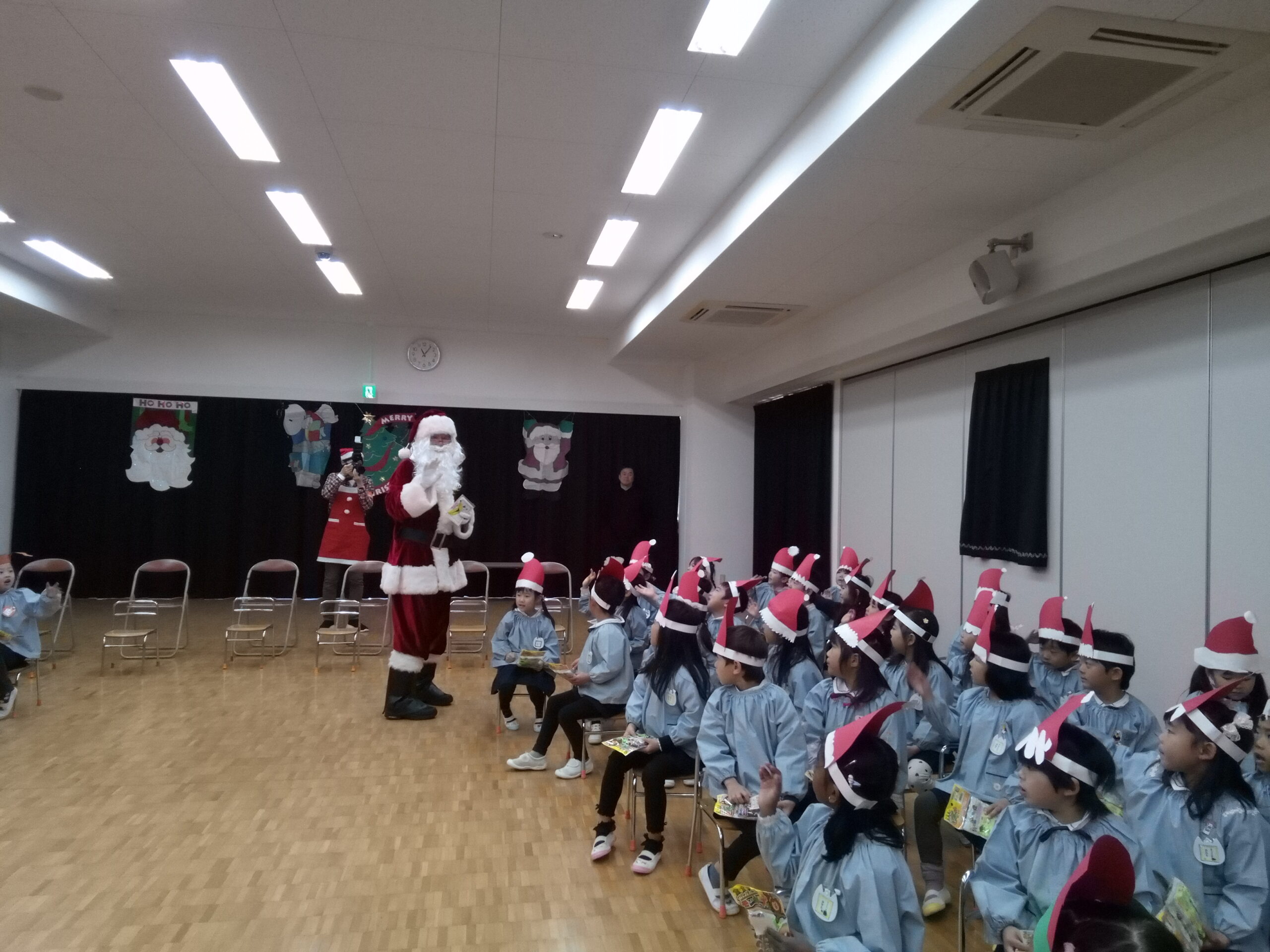 サンタさんが登場すると、子ども達は、一生懸命手を振っていました。