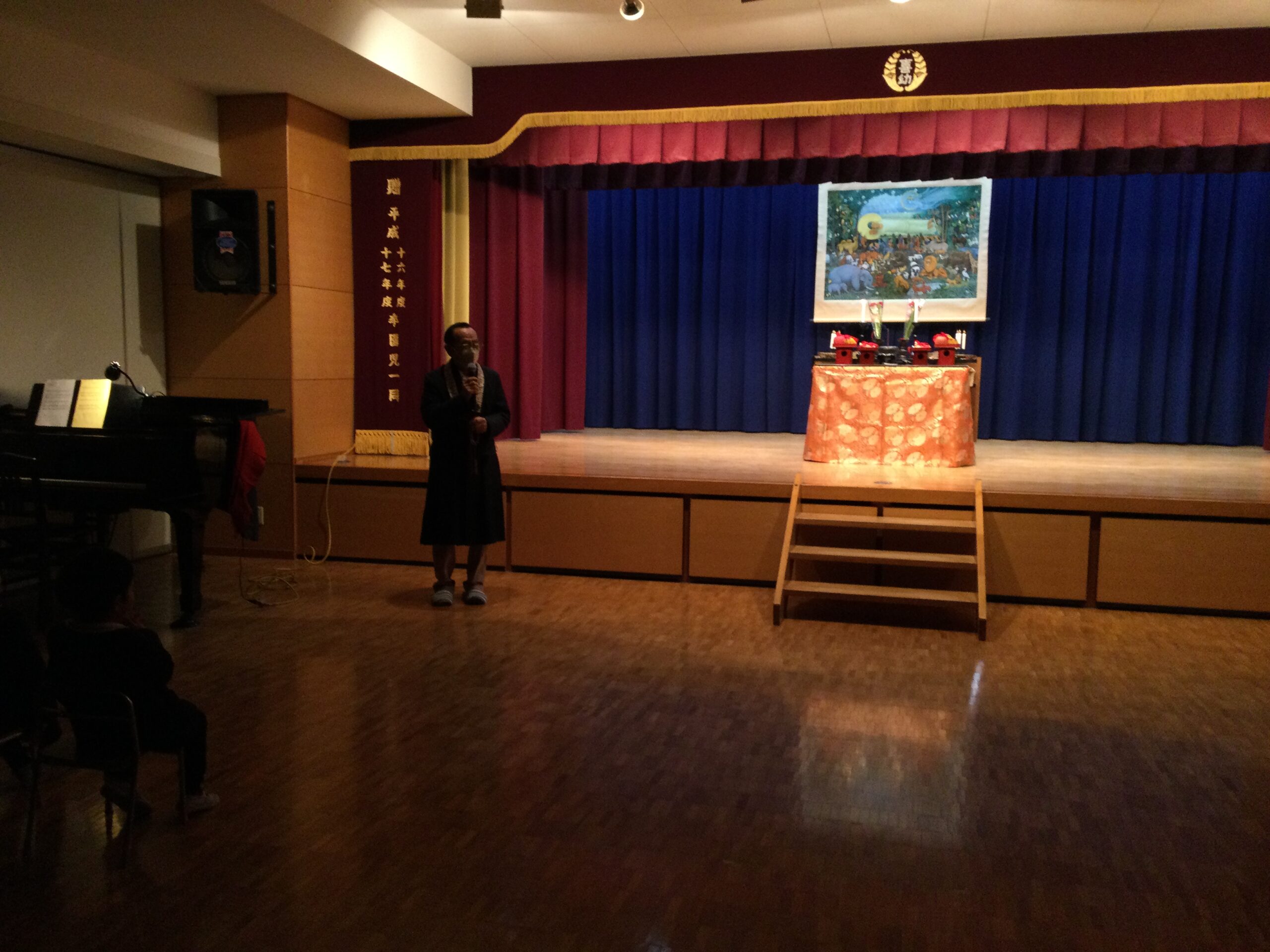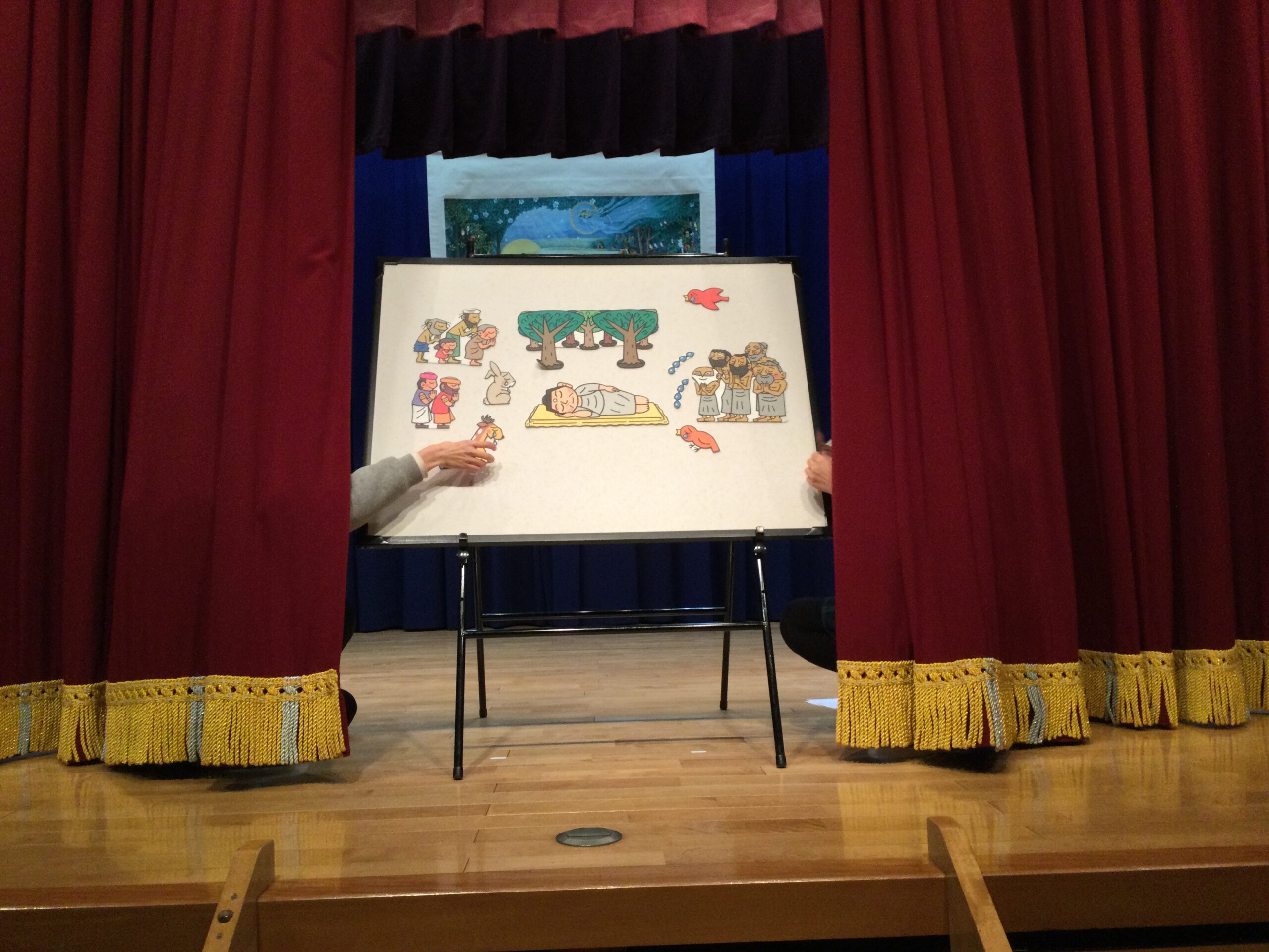 その後、園長先生のお話と、パネルシアターで涅槃会がどのような日かを学びました。