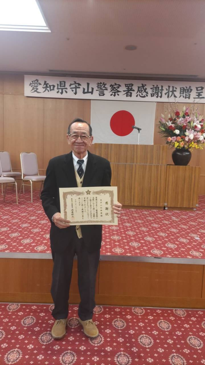 1月15日に守山警察署さんから、感謝状をいただきました。